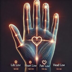 運命線は、手のひらの中央を縦に走る線で、人生の方向性や仕事運を示します。特に、仕事における成功や努力の結果が運命線に表れるとされています。運命線が濃くはっきりしている人は、強い意志と努力で人生を切り開く力を持っています。薄い運命線は、環境の影響を受けやすいことを示し、運勢の流れに左右されることが多いです。